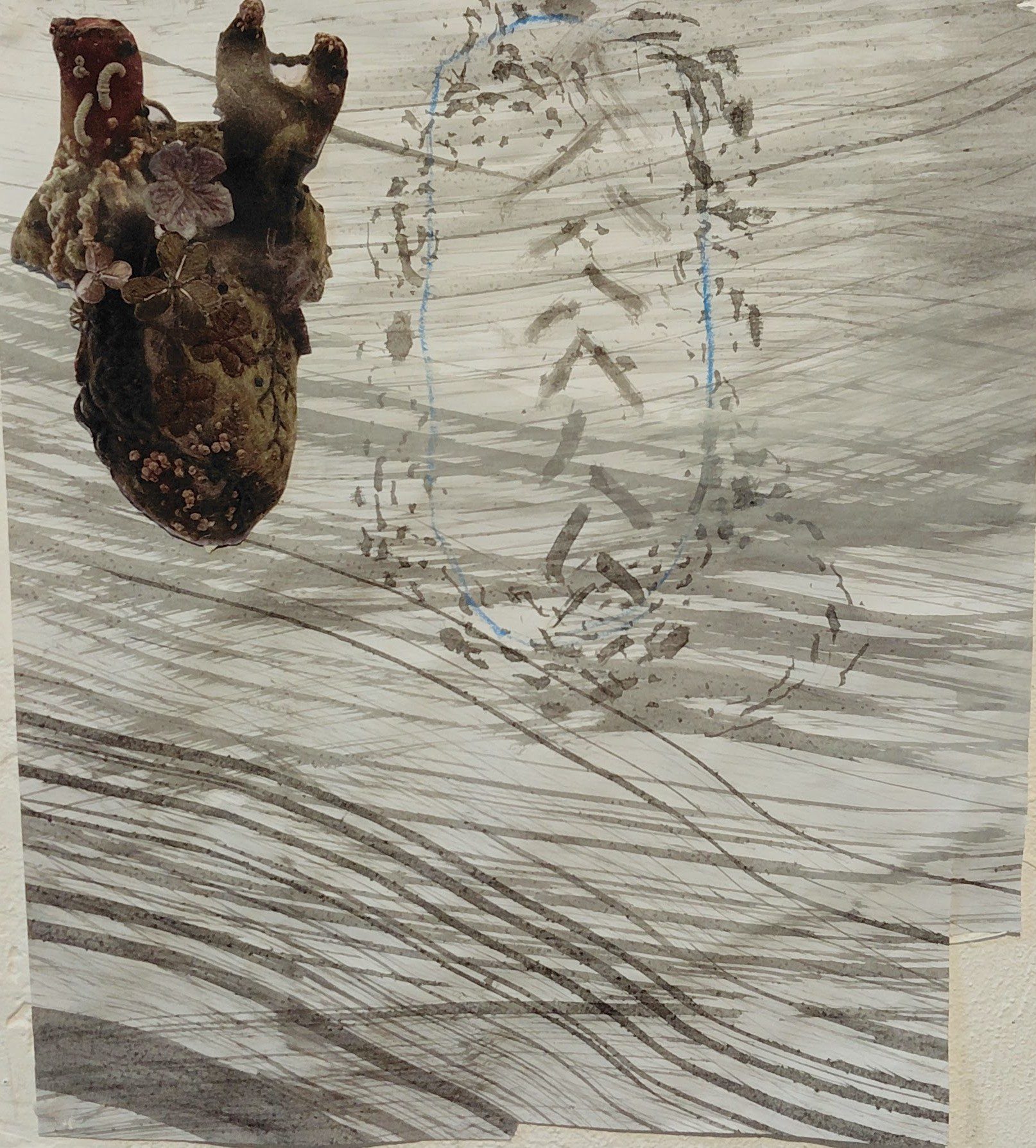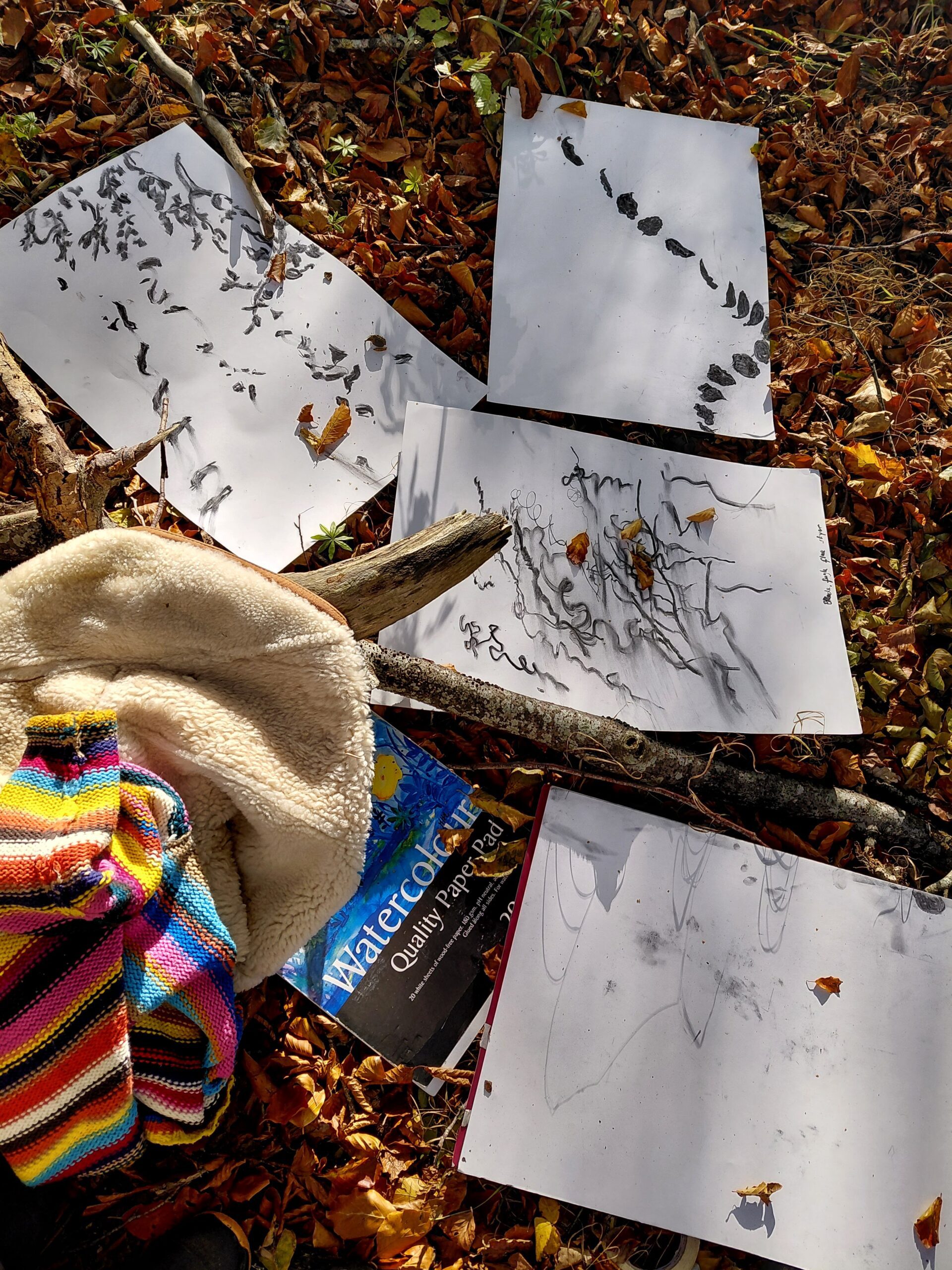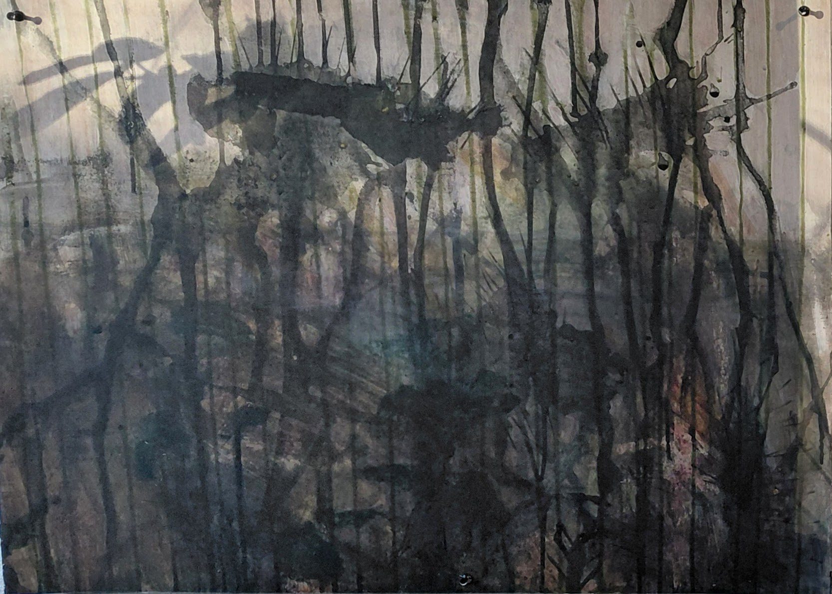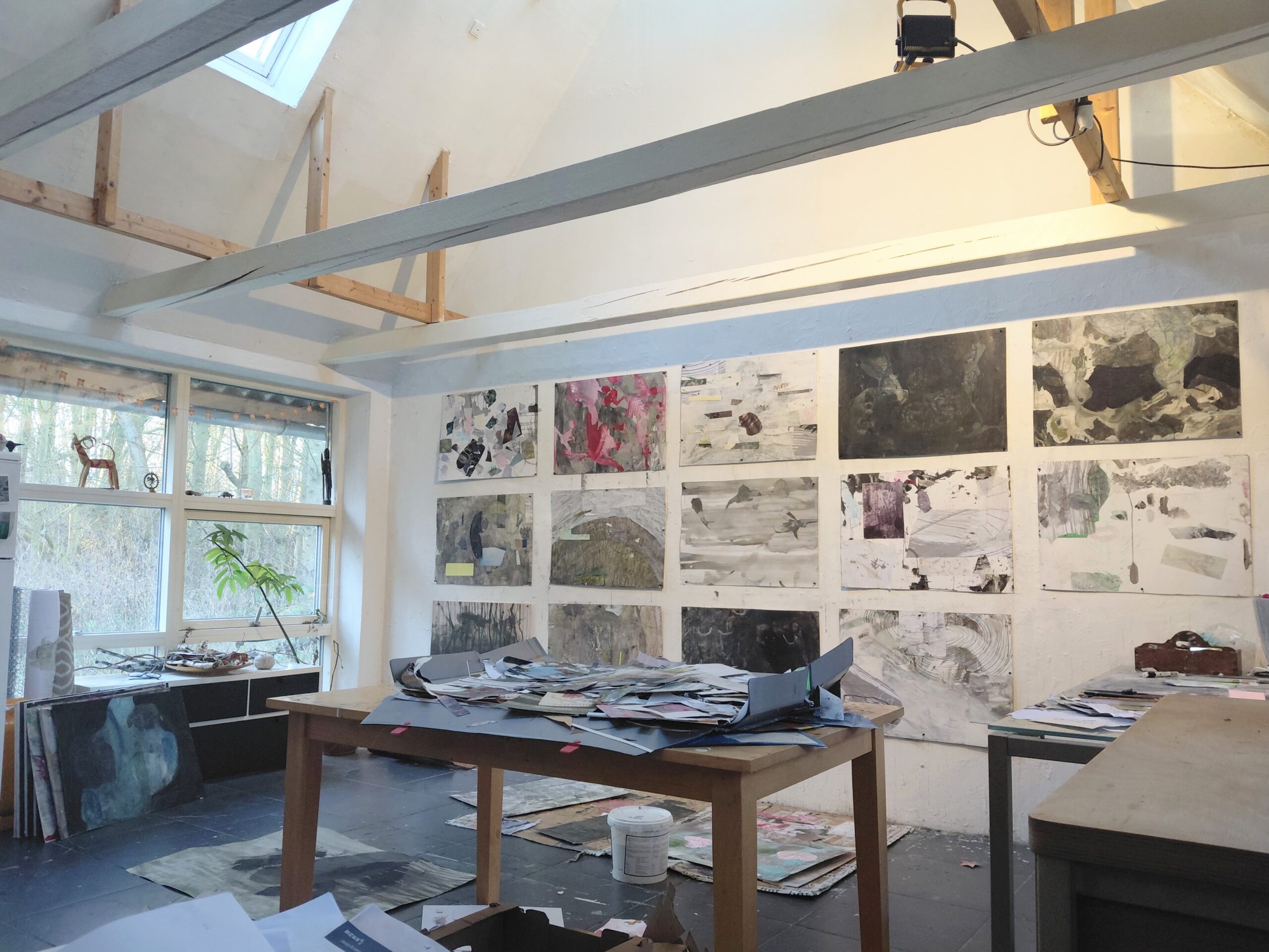 Udpluk af aktuelle værker herunder. Bearbejdede fotos 70 x70 cm eller 40 x 50, blækmalerier 100 x 70 cm, alle værker af kreative processer i samspil med natur, Nederste del af galleri er fotos fra workshops / NatureMoves aktiviteter.
